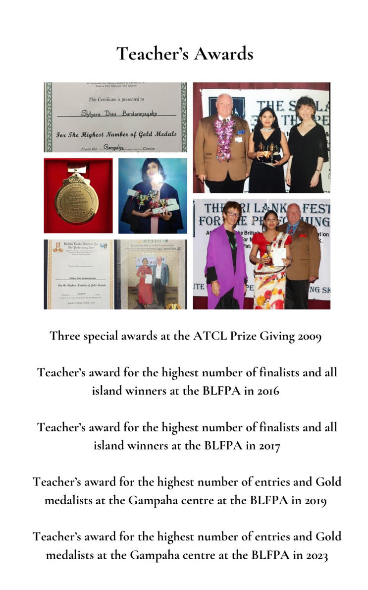 "I was so fortunate to study under Ms. Shihara from the Preliminary level to the ATCL Diploma in Performing (Speech and Drama) examination. Her lessons were not only interesting and fun but also incredibly informative. I owe much of my success as a Speech and Drama teacher with a distinction in the ATCL diploma today to her guidance".-Nisadi Kularatna (Speech and Drama and Communication Skills teacher)*****